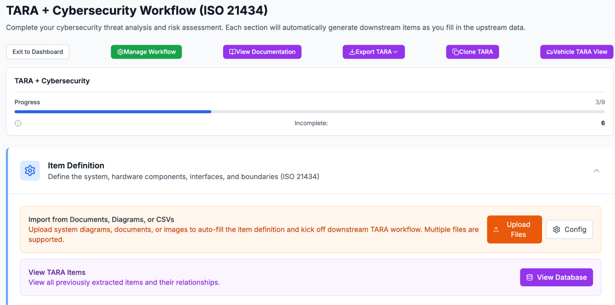 Instead of treating TARA as a static document, this approach treats it as a guided workflow that engineers can move through quickly and confidently.