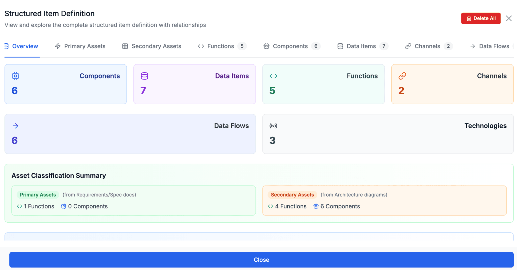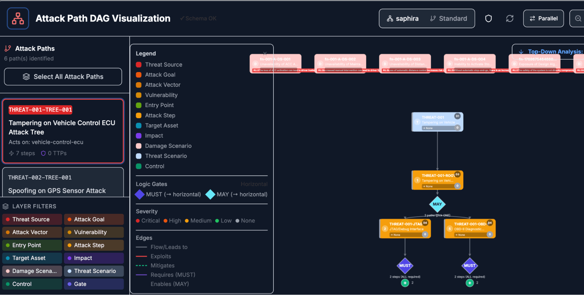 Once the system model and assets are in place, the platform generates the core TARA artifacts: